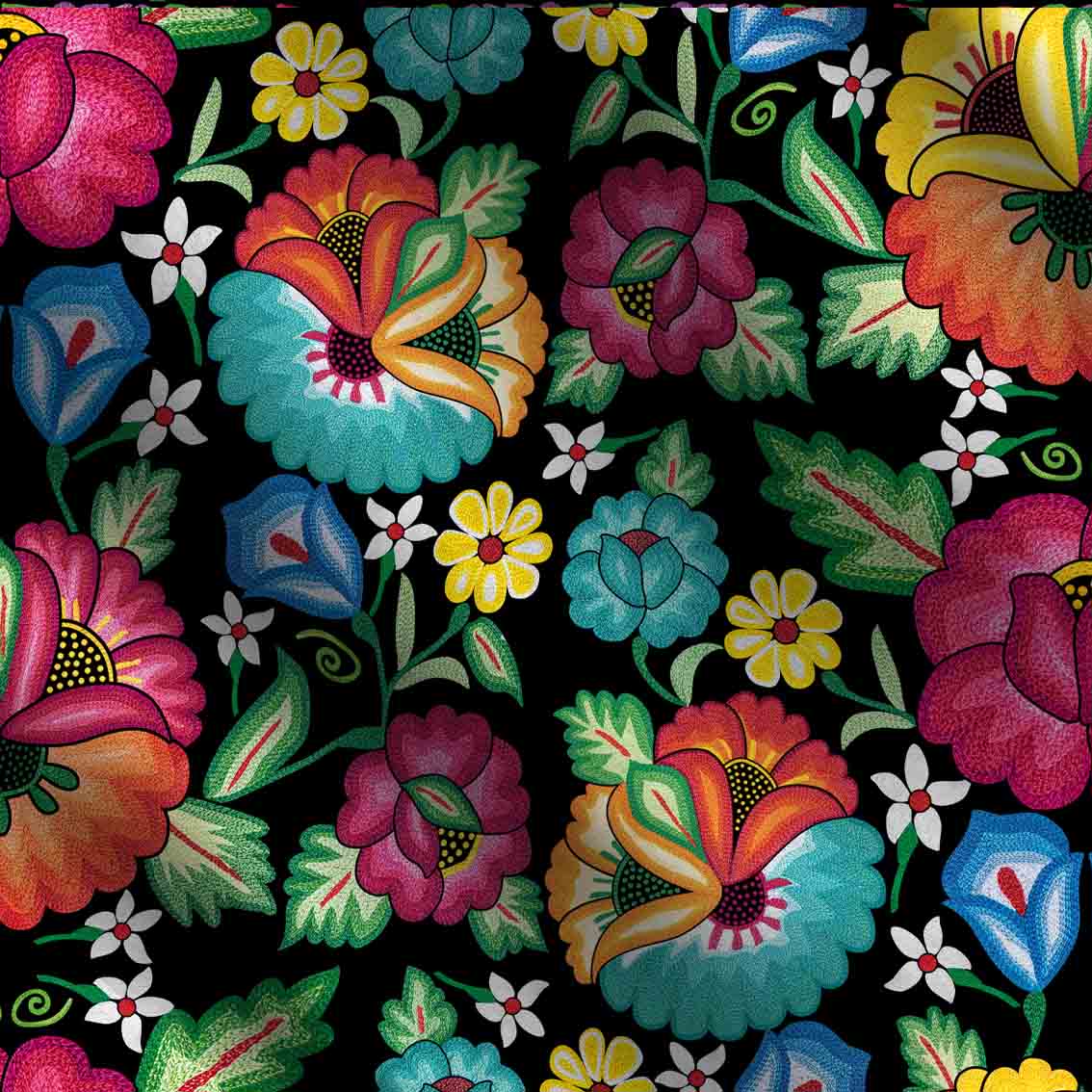 Textil teñido, tipo seda, inspirados en el folklore y cultura del estado de Oaxaca.